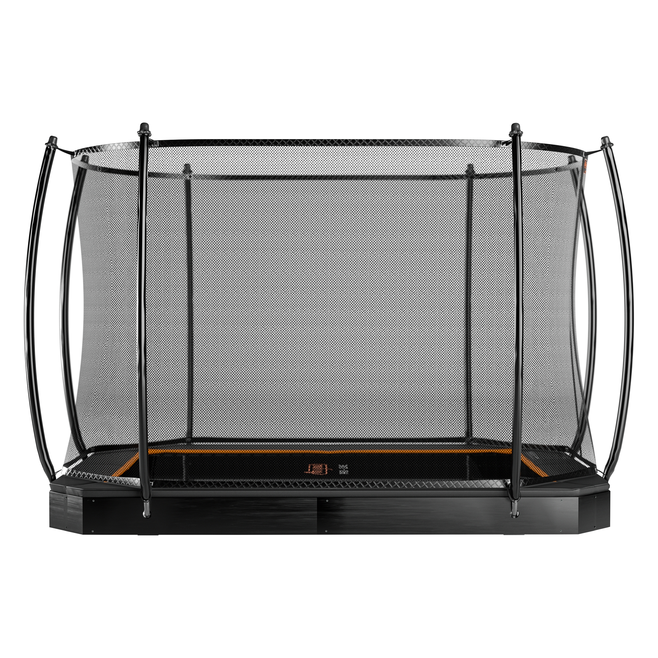 Dieses kleine rechteckige Bodentrampolin mit den Maßen 305 x 225 cm ist ebenerdig, denn der Doppelrahmen des Trampolins hat eine PVC-Schalung, die 22 cm in den Boden eingelassen wird. So ist das Trampolin gut in Ihren Garten integriert und hat einen sicheren Ein- und Ausstieg. Dieses Trampolin enthält ein Sicherheitsnetz, das das Springen noch sicherer macht.