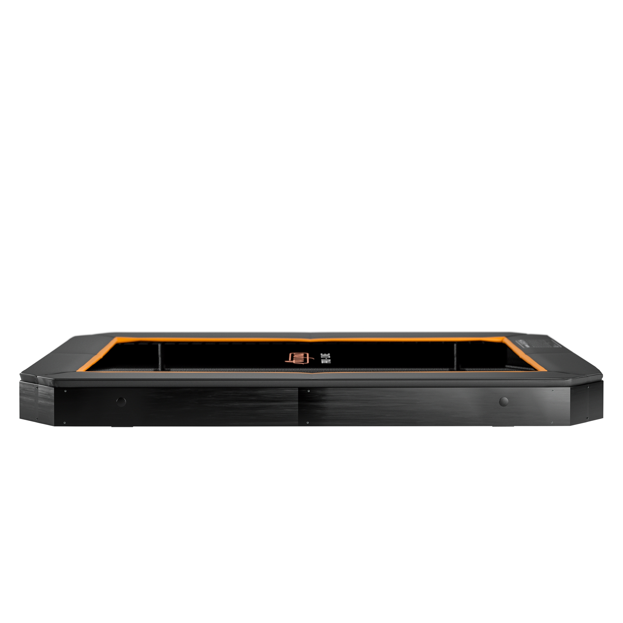 Die schwarze Sprungmatte hat einen orangefarbenen Rand, damit Sie den Unterschied zwischen der Sprungmatte und dem Schutzkissen deutlich erkennen können. Auf diese Weise springen Sie nicht vom Tuch und können sicher auf diesem Trampolin springen!