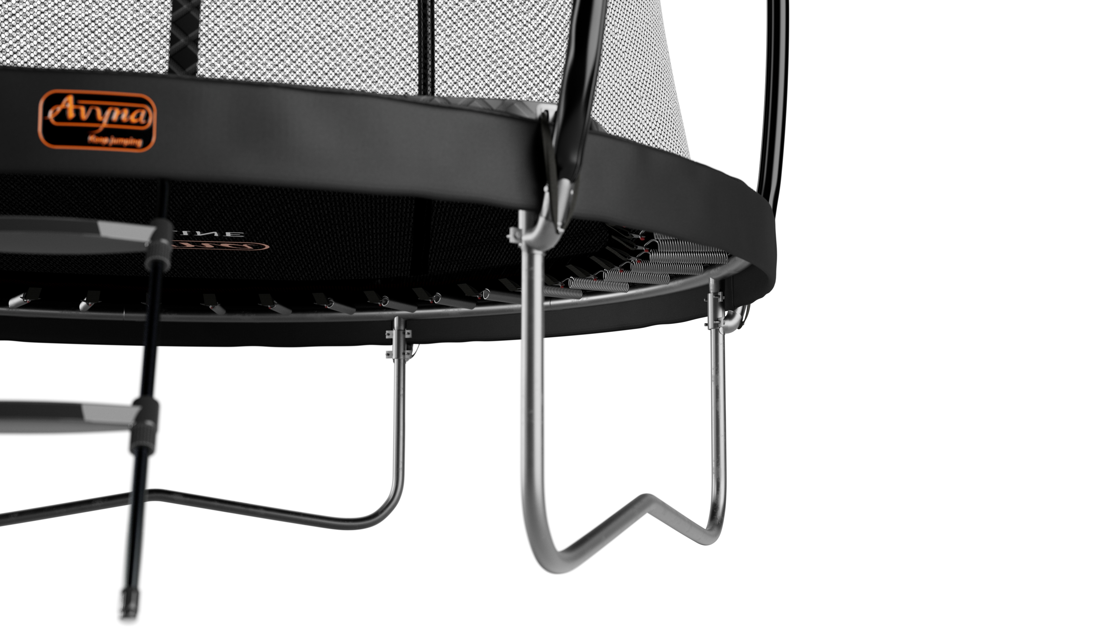 Der schwere Stahl ist doppelt verzinkt, so dass ein Rosten praktisch unmöglich ist. Nicht umsonst bietet Avyna eine lebenslange Garantie auf die Trampolinrahmen.