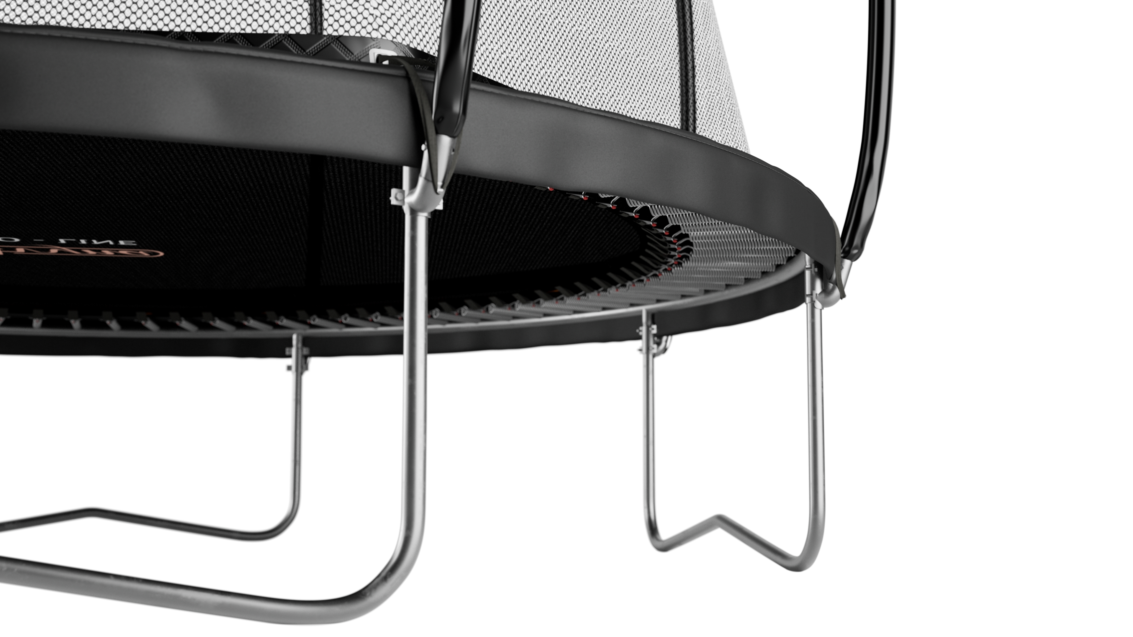 Dank des erneuerten Sicherheitsnetzes, das aus Sicherheitsgründen auf halber Höhe des Trampolinrandes endet, ist das Design noch eleganter als es ohnehin schon war und sieht in jedem Garten gut aus.