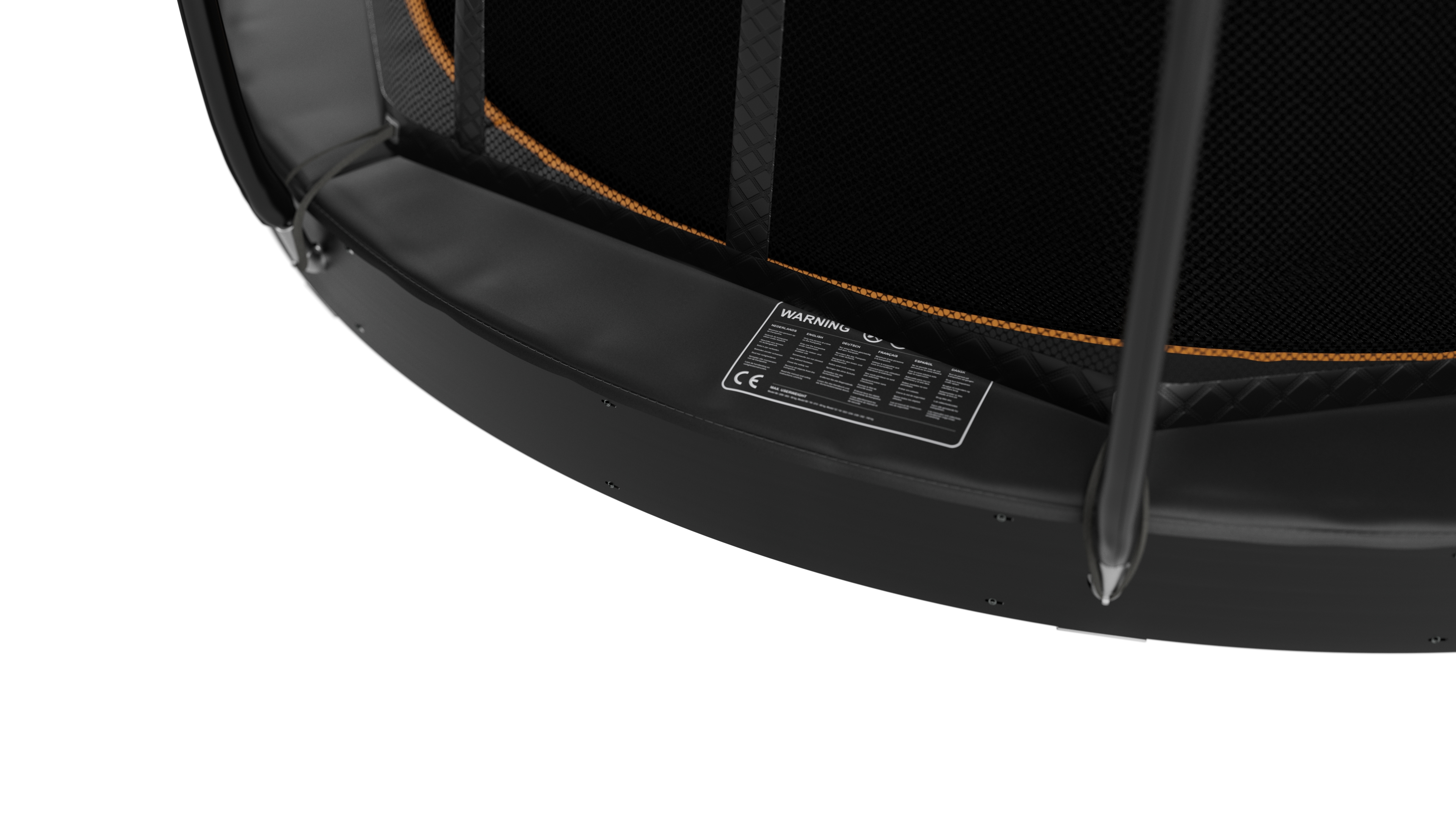 Ciò mantiene il bordo ben fermo sul trampolino durante il salto. Sul telo da salto nero c’è un bordino arancione in modo da poter vedere chiaramente la differenza tra il telo da salto e il cuscino di protezione. In questo modo non salti fuori dal telo e puoi saltare in sicurezza!